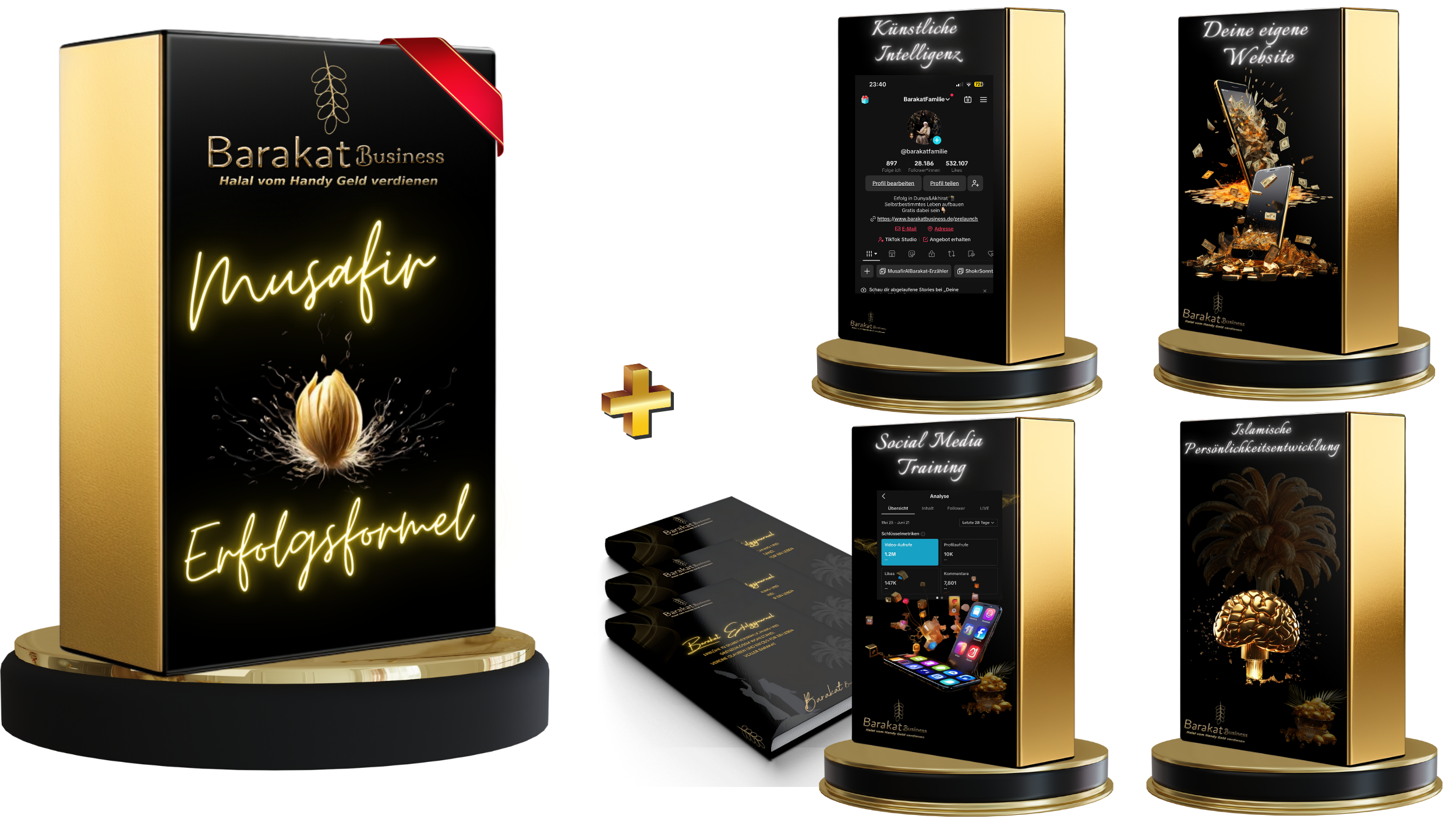 Die Musafir Erfolgsformel ist deine Brücke zwischen Deen und Dunya. Ein System, das dir zeigt, wie Glaube und Wohlstand Hand in Hand gehen können. Lerne, wie man erfolgreich im Hier und Jetzt lebt und gleichzeitig für das Akhirat baut.